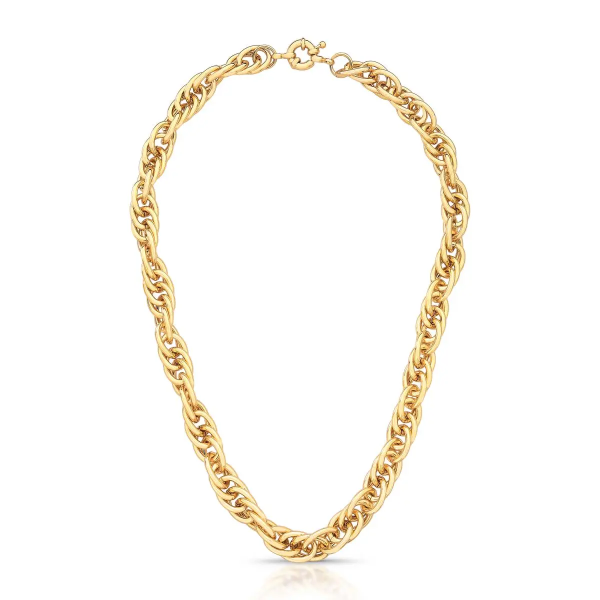 Colar banhado a ouro com elos ovais vazados e fecho boia, que une delicadeza e modernidade para valorizar qualquer look com charme.