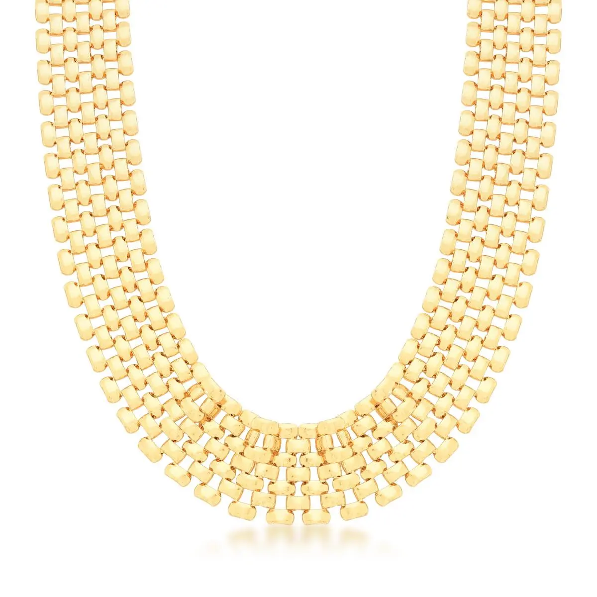 Colar com sete fileiras lisas, vazadas. Delicadeza e elegância é como se caracteriza esse acessórios sendo uma opção ideal para compor diversos looks e ocasiões.