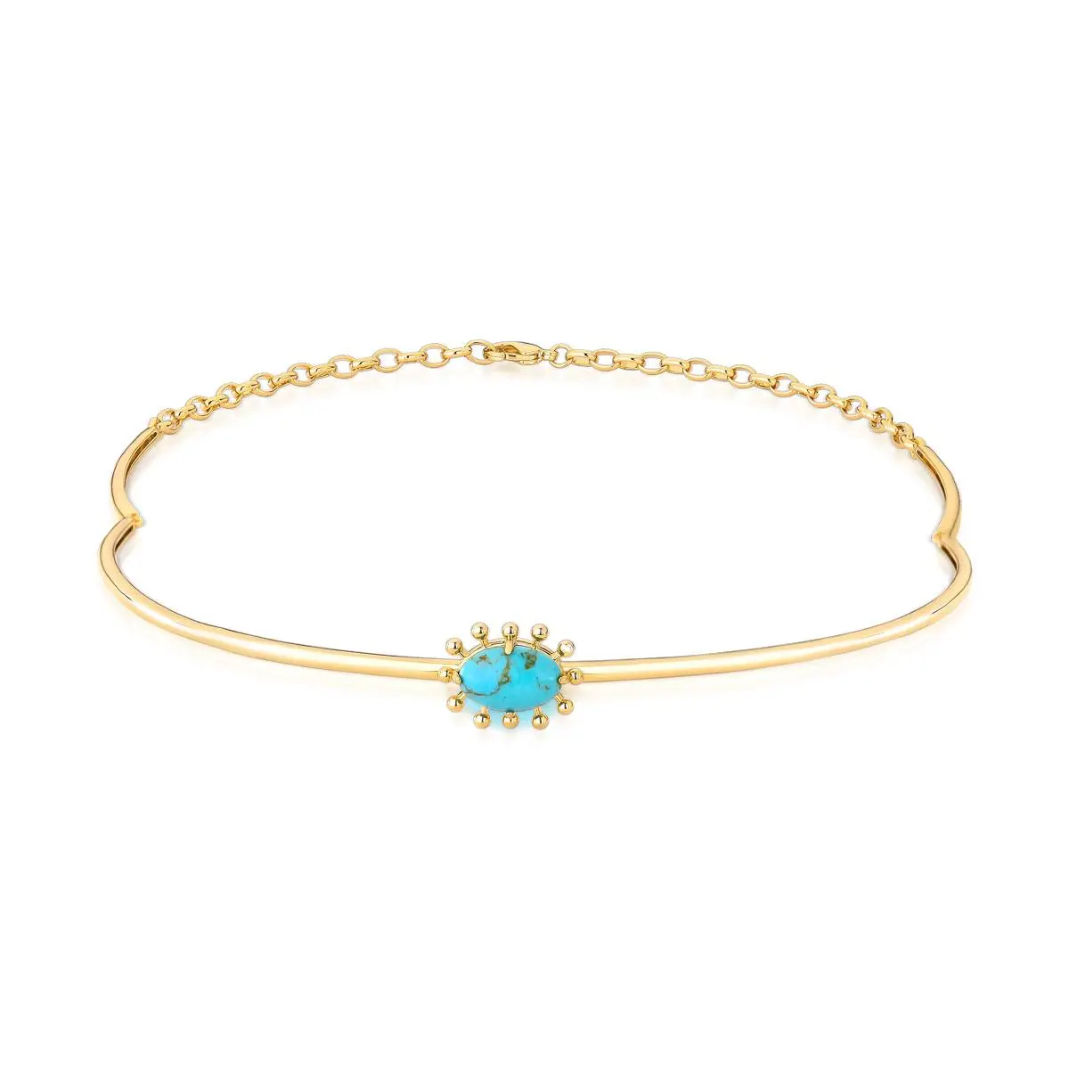 Gargantilha aro banhada a ouro com pedra reconstituída oval e esferas lisas em contorno. Peça sofisticada com malha de elos ovais que valoriza qualquer look com elegância e modernidade