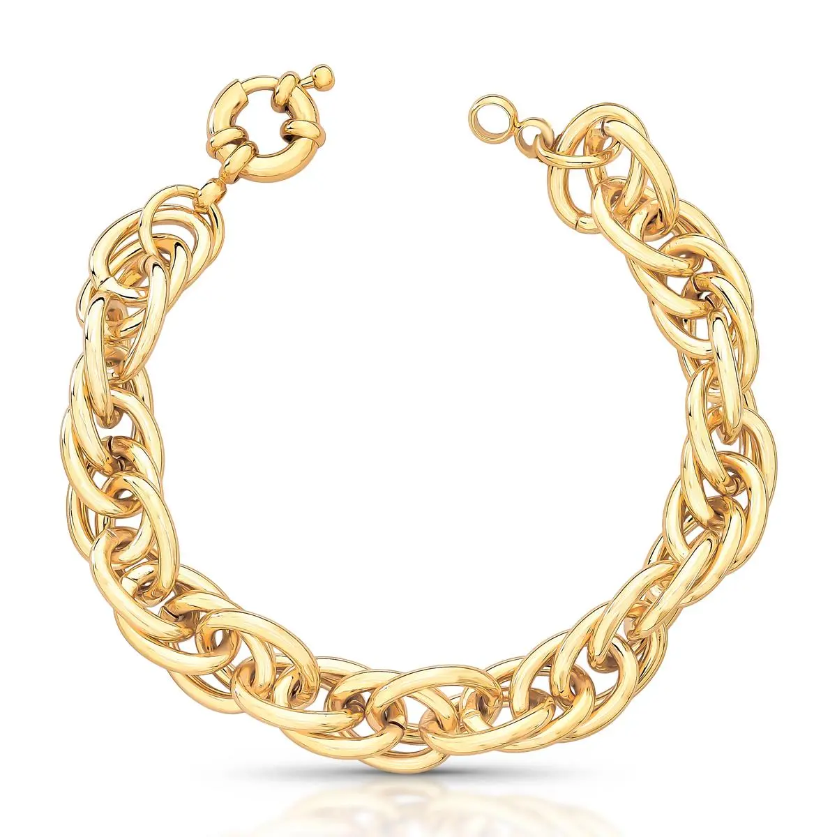 Pulseira banhada a ouro com elos ovais vazados e fecho boia, que oferecem um visual leve e sofisticado. Ideal para complementar qualquer look com elegância e estilo.